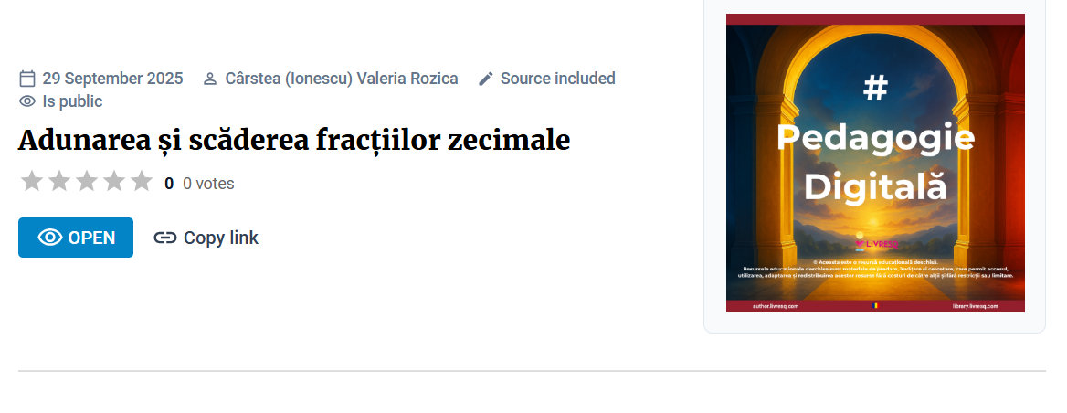 După o recapitulare a conoștințelor anterioare realizate prin intermediul unui formular google, profesorul prezintă noua lecție, face o prezentare a proprietăților adunării , plecând de la cunoștințele elevilor despre numerele naturale, apoi folosește un filmuleț pentru a demonstra regulile de adunare a fracțiilor zecimale. După aceasta, realizează mai multe exerciții, pe baza unei fișe de lucru, distribuită în Google Classroom. Arată că și scăderea se face după aceleași reguli.