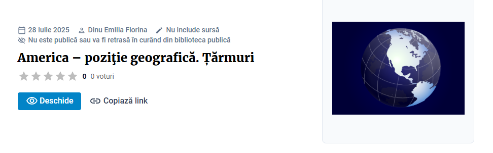 America – descoperirea și însușirea conținuturilor despre poziția geografică și țărmurile noului continent.
