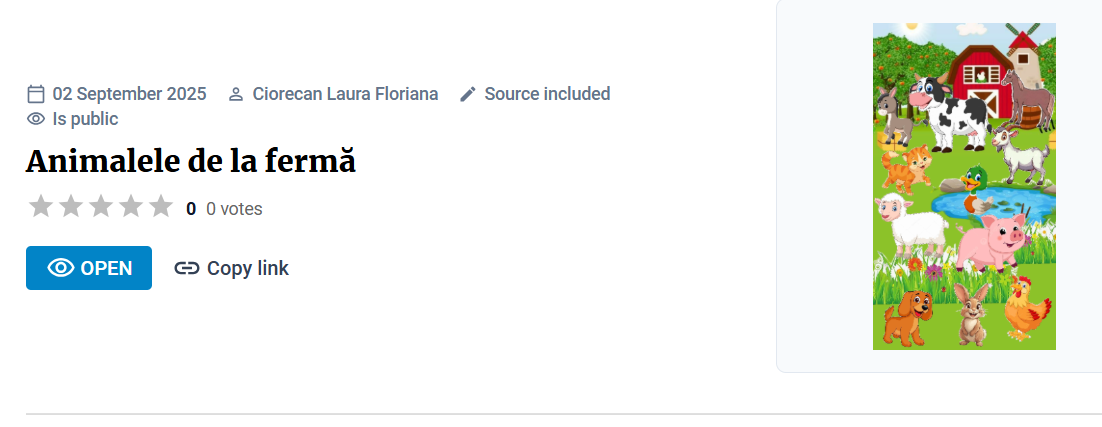 Această lecție interactivă este dedicată copiilor din grădiniță și are ca scop familiarizarea acestora cu animalele si cu sunetele acestora. Lecția folosește imagini, jocuri interactive și materiale audio-video pentru a face procesul de învățare atractiv și eficient.