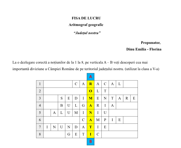 JOC DIDACTIC – ARITMOGRAF GEOGRAFIC – “Județul nostru”