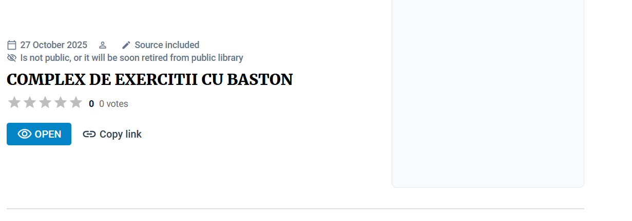 Se utilizeaza pentru veriga a 3-a și este un complex format din 10 exerciții de dezvoltare fizică, utilizand bastonul de gimnastica. De asemenea poate fi utilizat si pentru corectarea unor deficiențe de postura sau ale coloanei vertebrale la elevii care prezinta astfel de situații.