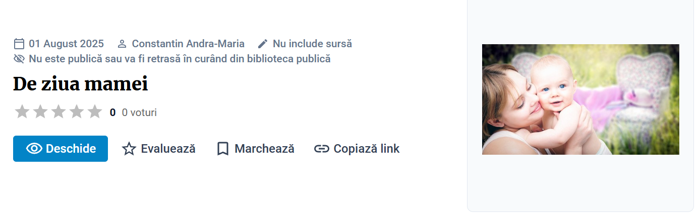 Licență: CC BY-NC-SA 4.0, Atribuire-necomercial-distribuire în condiţii identice 4.0 internaționalConținutul acestui material poate fi utilizat liber cu condiția menționării sursei și, unde e posibil, a autorului. Modificarea este permisă, iar materialele derivate trebuie, la rândul lor, să poată fi utilizate liber și modificate fără restricții.