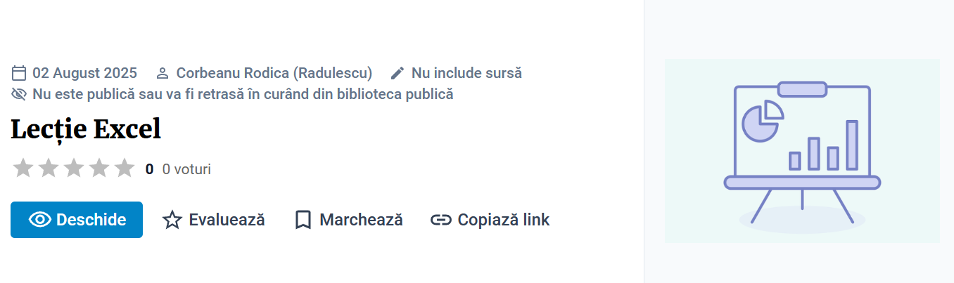 Licență: CC BY-NC-SA 4.0, Atribuire-necomercial-distribuire în condiţii identice 4.0 internaționalConținutul acestui material poate fi utilizat liber cu condiția menționării sursei și, unde e posibil, a autorului. Modificarea este permisă, iar materialele derivate trebuie, la rândul lor, să poată fi utilizate liber și modificate fără restricții.