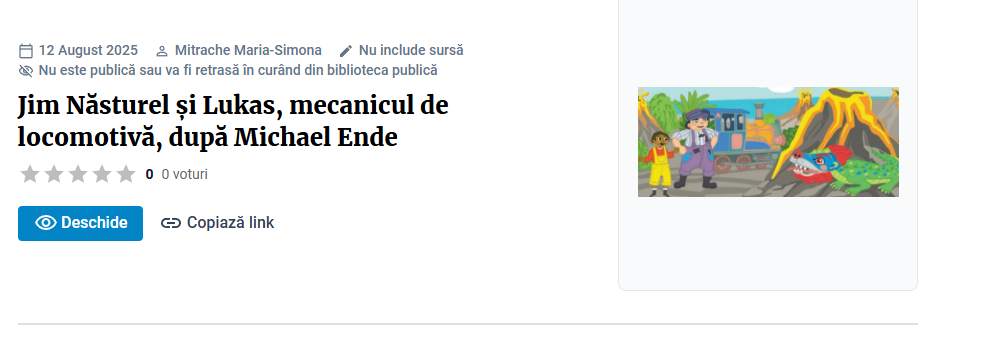 Textul literar Jim Năsturel și Lukas, mecanicul de locomotivă, după Michael Ende este unul literar, iar prin această secvență de lecție se urmărește manifestarea interesului față de activități prin participarea activă.
