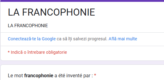Verificarea însușirii cunoștințelor de bază referitoare la tema “La francophonie”