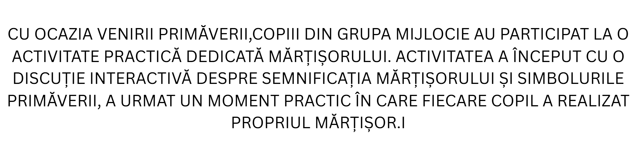 GHIOCEI ȘI MĂRȚIȘOARE, PRIMELE RAZE DE SOARENu puteam trece cu vederea faptul că toţi copiii sunt fascinaţi de reînvierea naturii .Deoarece copiii au început să mă întrebe care este simbolul primăverii şi dacă avem şi sărbători de primăvară ; am hotărât împreună cu ei ,să desfăşurăm acest proiect tematic numit simplu : ,, GHIOCEI ȘI MĂRȚIȘOARE, PRIMELE RAZE DE SOARE’’