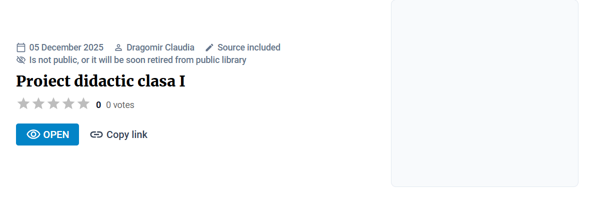 Proiect didactic de recapitulare-sistematizare cu tema-Numerele naturale de la 0 la100, care a urmărit obiectivele:O1.să numere corect în concentrul 0- 100 în ordine crescătoare şi descrescătoare;O2.să compare numere, utilizând semnele <, >, =;O3.să scrie vecinii numerelor date;O4.să ascocize corect operatia cu rezultatul;O5. să utililizeze corect terminologia matematică specifică temei în rezolvarea unor sarcini;O6.să formuleze răspunsuri la întrebări despre conţinutul unui mesaj;Folosind aplicaţiile educaţionale Wordwall şi Kahoot am creat o lecţie interesantă şi atractivă.