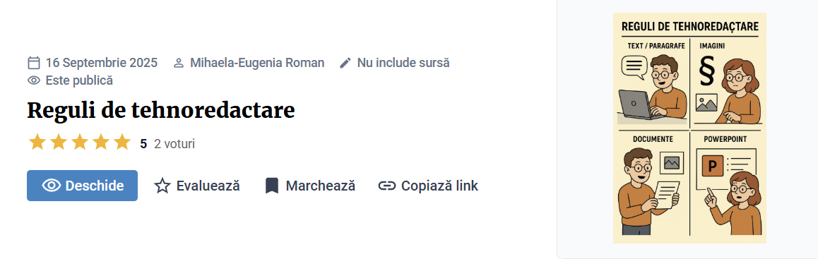 Licență: CC BY-NC-SA 4.0, Atribuire-necomercial-distribuire în condiţii identice 4.0 internaționalConținutul acestui material poate fi utilizat liber cu condiția menționării sursei și, unde e posibil, a autorului. Modificarea este permisă, iar materialele derivate trebuie, la rândul lor, să poată fi utilizate liber și modificate fără restricții.