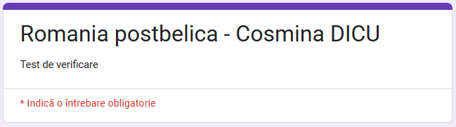 ROMÂNIA POSTBELICĂ- TEST DE VERIFICARE