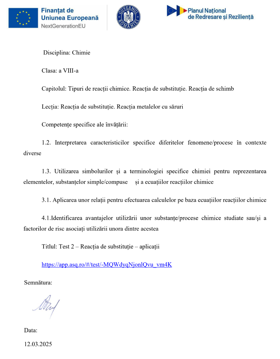 Să stabilească coeficienții stoechiometrici ai ecuațiilor reacțiilor chimice și să indice tipul reacției. Să efectueze calcule pe baza ecuațiilor reacțiilor chimice.