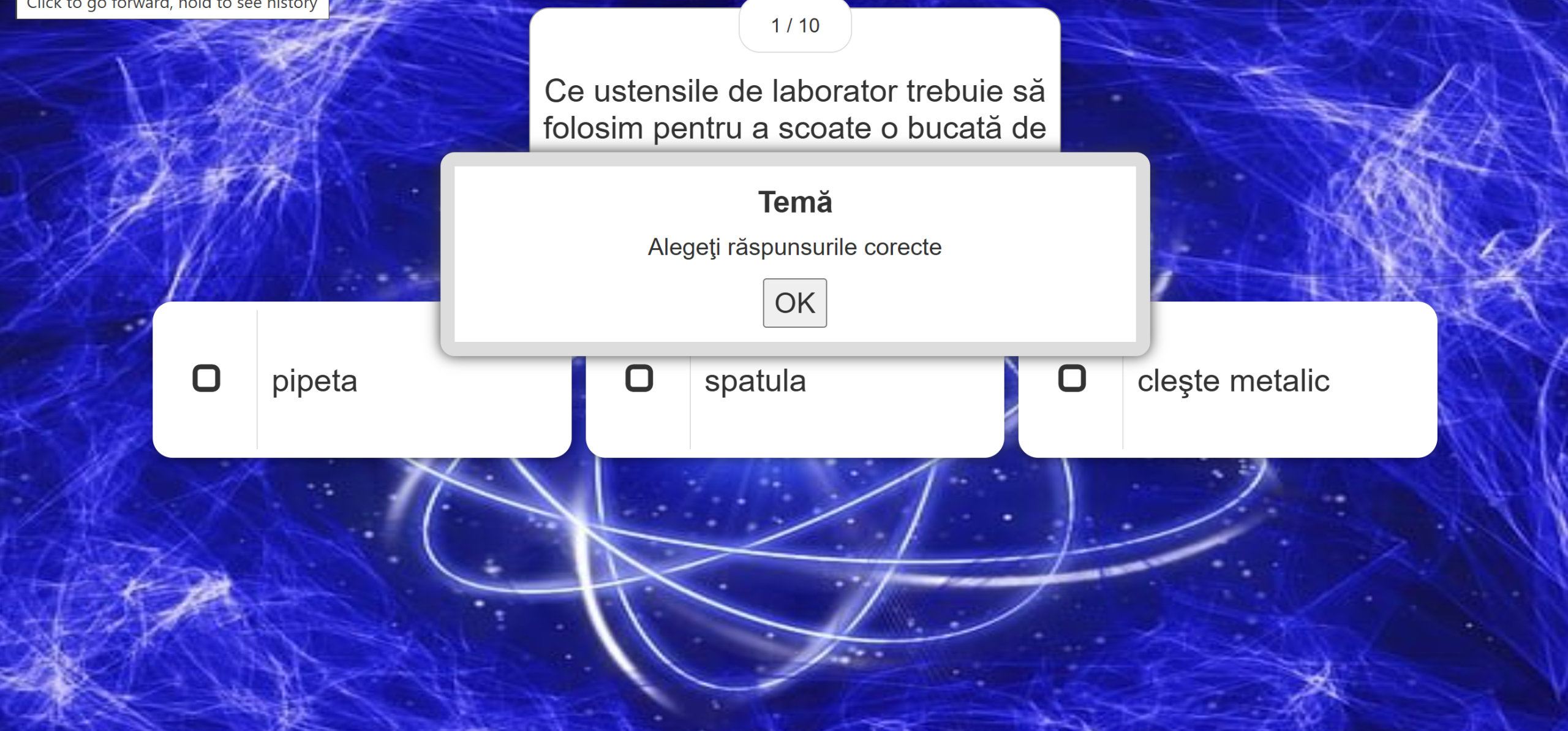 Fixarea cunoștințelor acumulate anterior despre ustensilele folosite în laboratorul de chimie, metodele de separare a amestecurilor și structura atomului