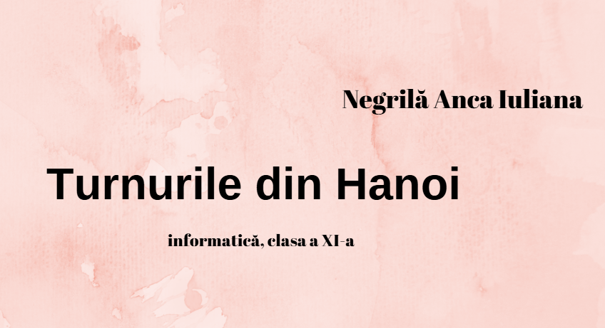 La unitatea de învățare Metoda de programare Divide et Impera, se studiază problema Turnurilor din Hanoi, implementată în limbajul C++ în varianta recursiva